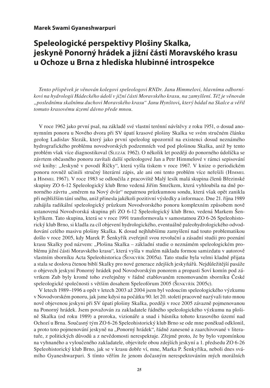 Speleologické perspektivy Plošiny Skalka, jeskyně Ponorný hrádek a jižní části Moravského krasu z hlediska hlubinné introspekce.