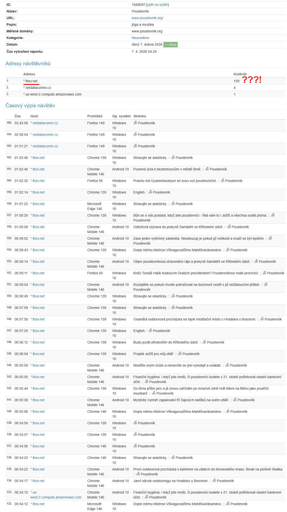Dnes se nějaký počítačový maniak připojil 159 krát, čímž mne nutí platit firmě Webnode zvláštní tarif, neboť Webnode si bere peníze za každé připojení k webu!