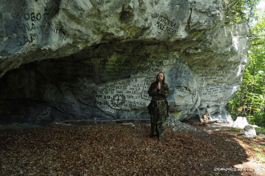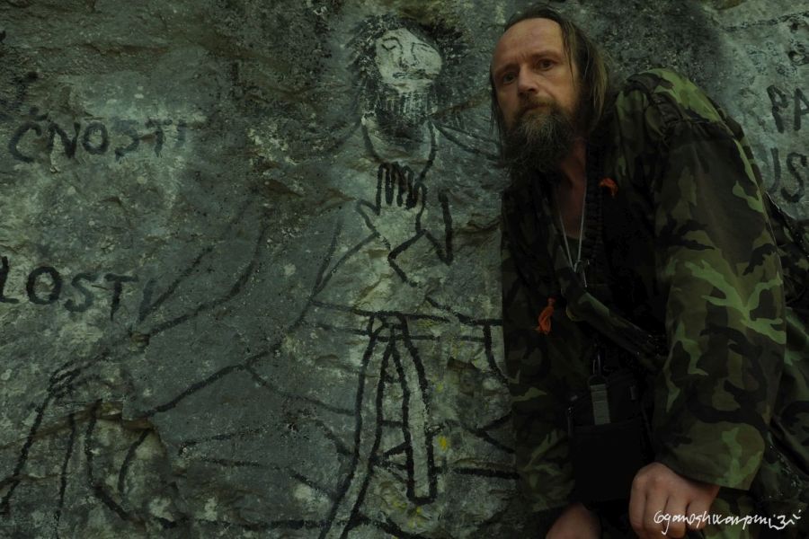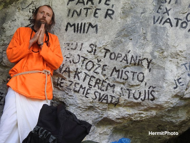 Odtajněné skalní umění poustevníka Gyaneshwarpuri v jeskyni jím zvané Poustevna ve Slovenském ráji s duchovní poésií, filozofií a mystikou obdrženou během hluboké meditace na tomto svatém místě v horách jeho života.