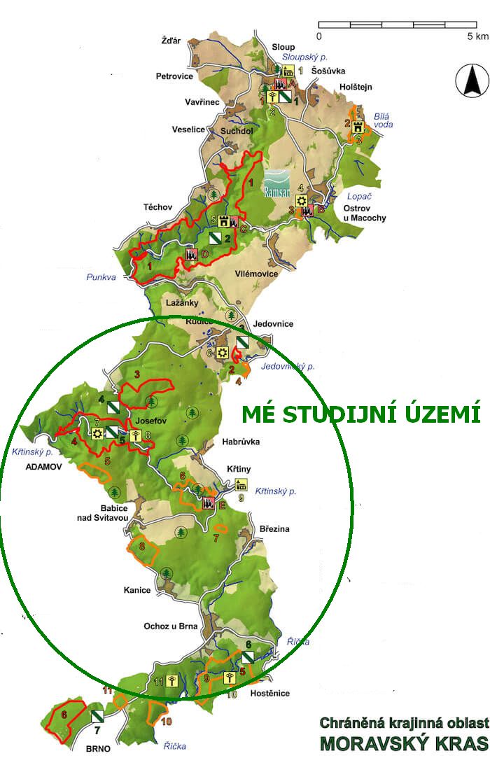 Mé poustevnické životní a studijní území v Moravském krasu jih a střed: